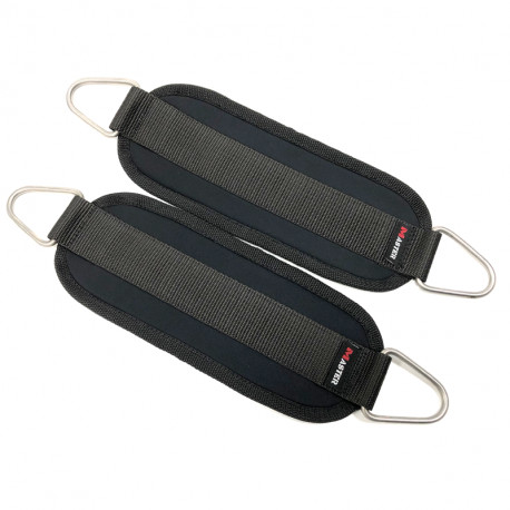 Манжета изготовлена из очень мягкого и приятного материала - неопрена. Этот материал полностью нейтрализует возможность натирания кожи. Конструкция по всему периметру укреплена прочной лентой. Для крепления к тренажеру манжета имеет два кольца, выполненных из высокопрочной хромированной стали. Изделие отличается небольшим весом и компактными габаритами, имеет длительный срок эксплуатации, прекрасно стирается и отличается лаконичным дизайном.