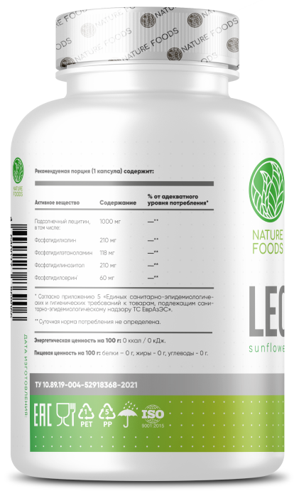 Лецитин - источник незаменимых фосфолипидов на основе натурального лецитина подсолнечника. Фосфолипиды защищают клетки печени и принимают участие в их восстановлении, способствуют регулированию уровня холестерина. Кроме того, холин поддерживает работу почти всех отделов головного мозга, значительно влияя на их продуктивность.
