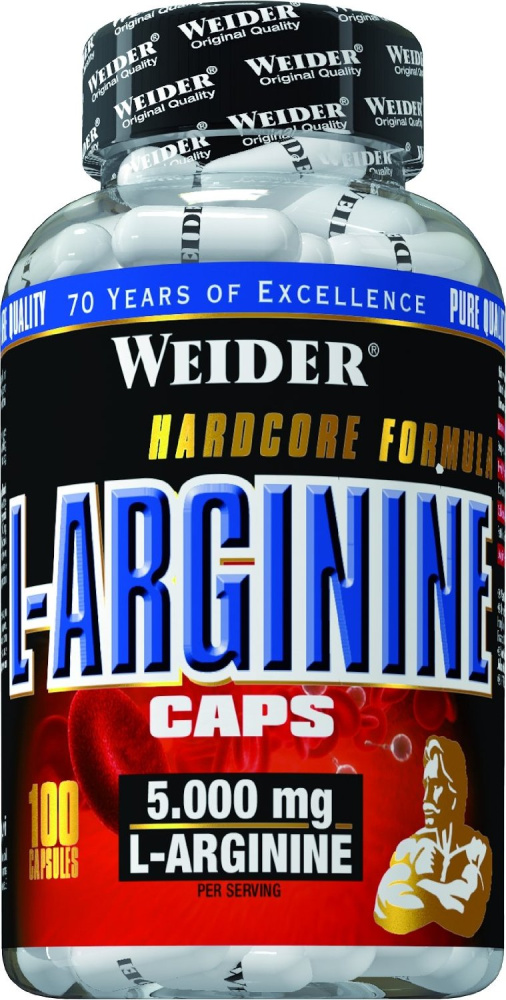 Weider L-Arginine Caps - чистый аргинин европейского качества, способствующий мышечной накачке, посредством снабжения организма оксидом азота.