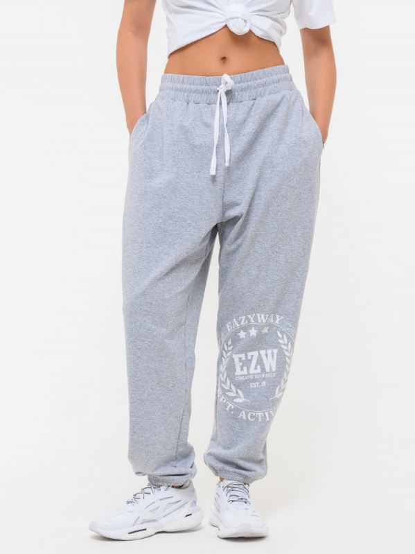 Объемные трендовые брюки в стильном сером цвете, который приятно сочетается с белым брендированным принтом. Функциональность этой модели не уступает ее внешнему виду – свободный крой, а также пояс и манжеты с резинкой не ограничивают движений, надежно фиксируя брюки на талии.