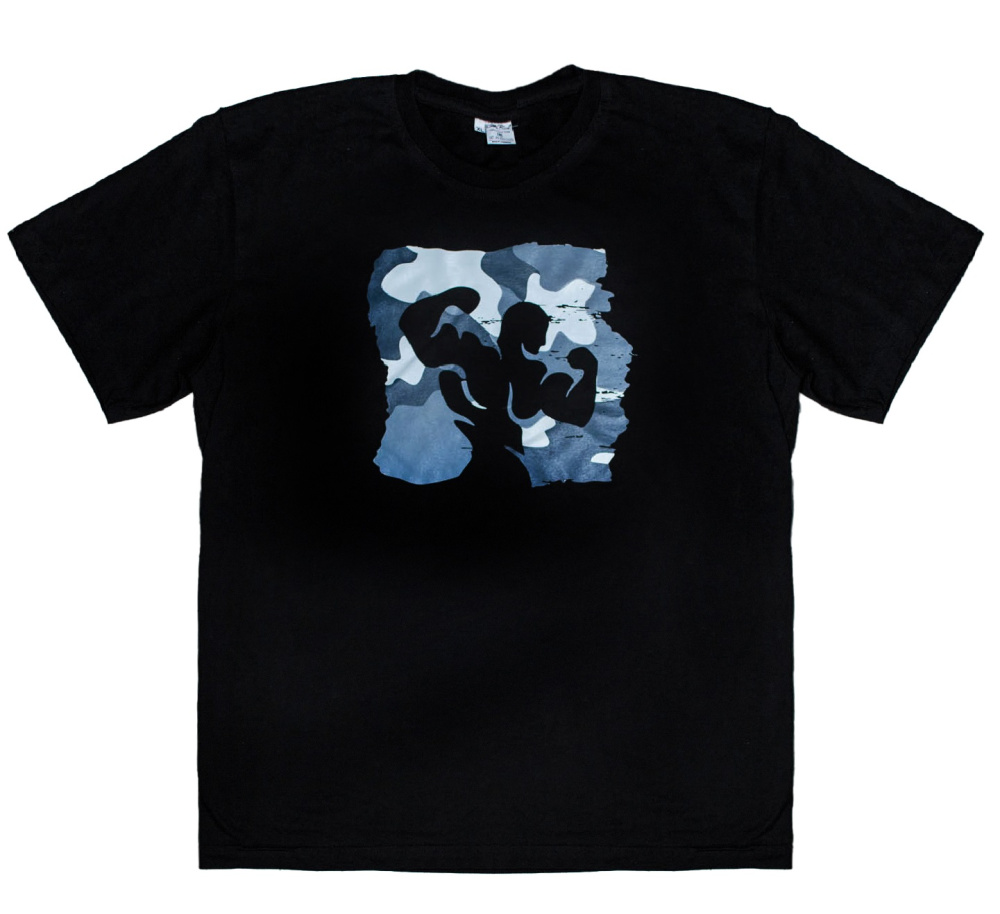 Kultlab Футболка мужская с логотипом серый камуфляж, чёрная