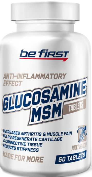 Глюкозамин+МСМ от Be First является хондропротектором и оказывает полноценную поддержку суставам в целях профилактики и восстановления поврежденных тканей – у спортсменов, занимающихся силовыми видами спорта, боевыми искусствами, бегом и прыжками, а также у всех, кто в силу возраста или полученных травм испытывает проблемы с суставами.