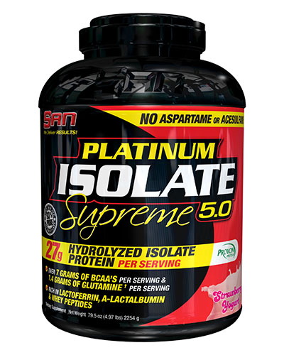 Platinum Isolate Supreme содержит: глютамин, аминокислоты с разветвленными цепочками, цистеин, минералы, лактальбумин, лактоферрин и питательные вещества, повышающие уровень глютатионина, который поддерживает иммунную систему. Формула, не содержащая жиров, сахара и лактозы, поставляет 27 грамм матрицы сывороточного изолята Ультра Премиум, включающий в себя сывороточный протеин гидролизат и изолят, который содержит никзко-, средне- и высокомолекулярные пептиды, необходимые для быстрого поглощения и набора сухой мышечной массы.