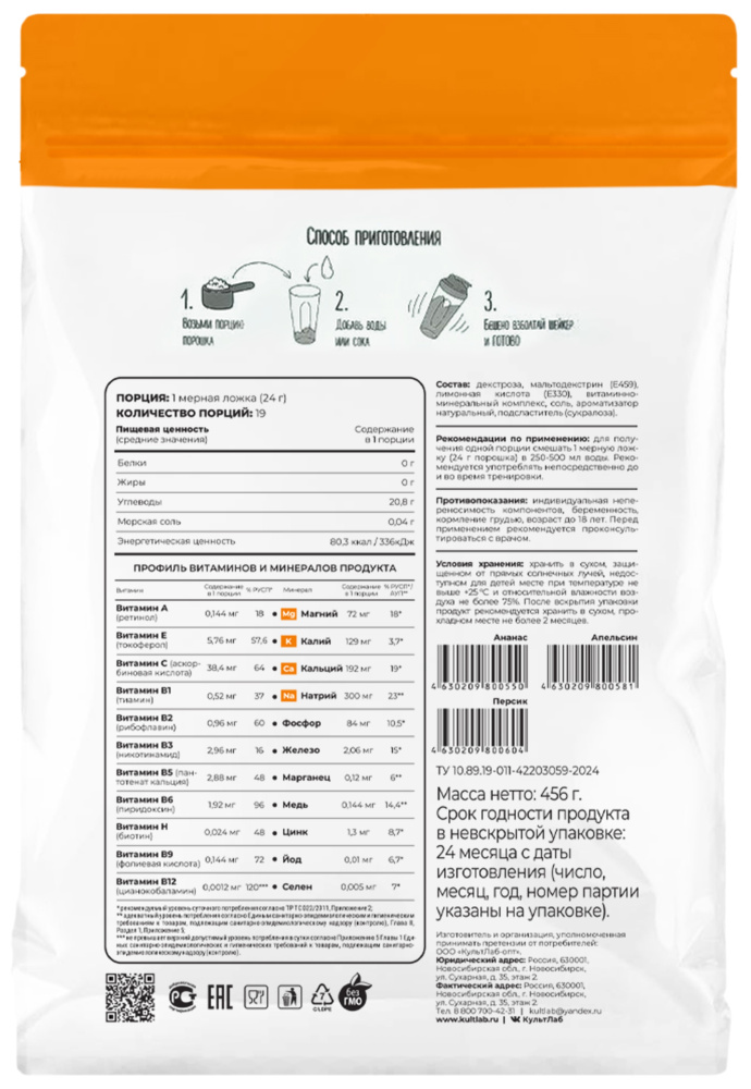 Витаминно - минеральный комплекс для приготовления изотонического напитка.