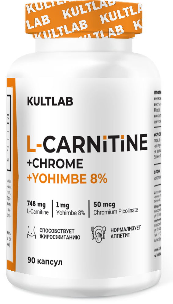 Kultlab L-Carnitine + Cr + Yohimbe 8% - натуральная добавка, способствующая похудению и укреплению мышечной массы. Средство нормализует аппетит, снижает зависимость от сладкого, помогает сбросить лишние килограммы, сохранив при этом мышечный объем. Kultlab L-Carnitine + Cr + Yohimbe 8% увеличивает выносливость при интенсивных нагрузках и способствует оздоровлению организма.