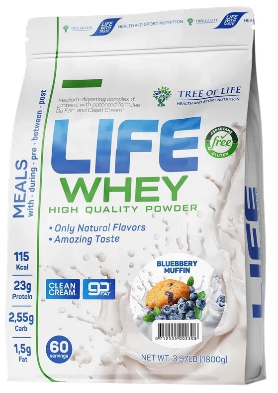 Tree of Life Life Whey это сывороточный протеин с добавлением казеиновый матрицы, содержащим казеиновую матрицу, что делает продукт более густым и похожим по консистенции на молочный коктейль. В одной порции содержится 24 грамма белка и всего 120 калорий, поэтому продукт подходит как для похудения, так и для наращивания мышечной массы. В состав входят натуральные вкусо-ароматические добавки и подсластитель сукралоза, отличающийся превосходным качеством и термостабильностью.