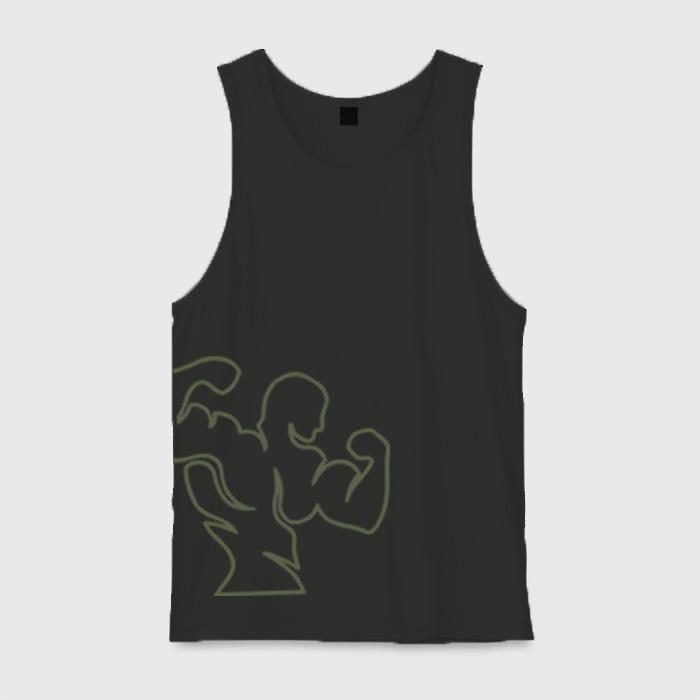 Kultlab Майка-борцовка с зелёным контурным логотипом сбоку, чёрный