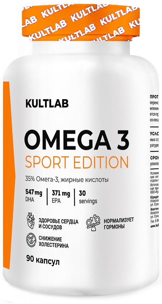 KultLab Omega-3 содержит самые ценные для человека ненасыщенные жирные кислоты: докозагексаеновую (ДГК) и эйкозапентаеновую (ЭПК). Они могут использоваться для профилактики широкого спектра заболеваний, борьбы с воспалениями и усиления работы мозга.