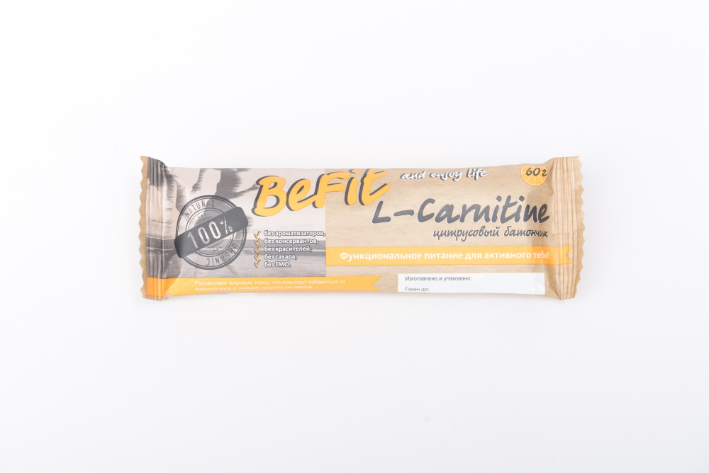 Эффективное восстановление энергетического баланса в организме является ключом к активной жизни. Именно для этого создан батончик “BeFit L-carnitine”. Благодаря содержанию L-карнитина, батончик повышает выносливость и производительность организма. Полезная злаковая основа является комплексным источником питательных веществ. Ускоряя белковый обмен, батончик способствует наращиванию мышечной массы, а препятствуя накоплению молочной кислоты, снижает мышечные боли после физических нагрузок. Активно способствующий расщеплению жировой ткани, “BeFit L-carnitine” так же позволяет следить за весом.