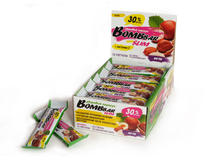 Батончики линейки Bombbar Slim созданы специально для тех, кто всегда хочет быть в хорошей форме. Прилив энергии и отличный заряд бодрости вам гарантированы!