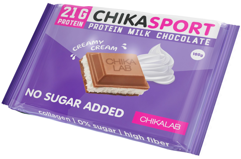 Протеиновый молочный шоколад Chikasport помогает увеличить количество белка в традиционном рационе питания, а также содержит вкачестве подсластителя натуральное кукурузное волокно, улучшающее пищеварительный процесс. В одной порции молочного шоколада содержится 21 грамм протеина с незаменимыми аминокислотами. Вкусный десерт для сладкоежек, который не вредит фигуре. Производитель не использует в составе ГМО, консерванты и сахар. Не оказывает негативного влияния на зубную эмаль. Помогает быстро перекусить и утолить чувство голода. Преимущества: - высокое содержание белка, - без сахара и консервантов, - натуральный и полезный состав, - высокие вкусовые качества, - быстрый перекус.