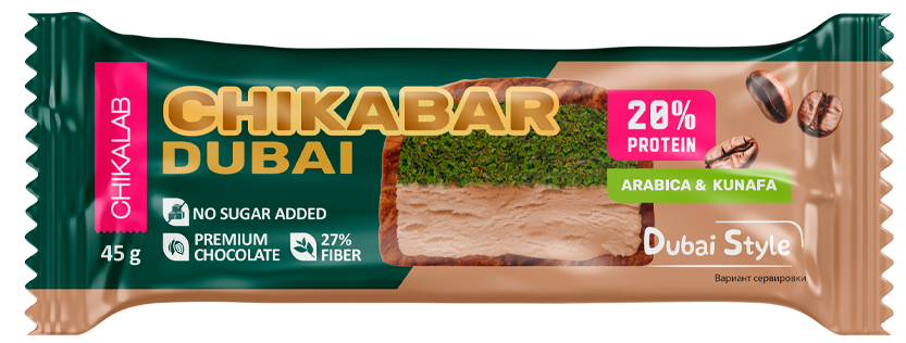 CHIKABAR DUBAI - протеиновый батончик с тестом катаифи и фисташковой пастой, вдохновленный легендарным Дубайским шоколадом.