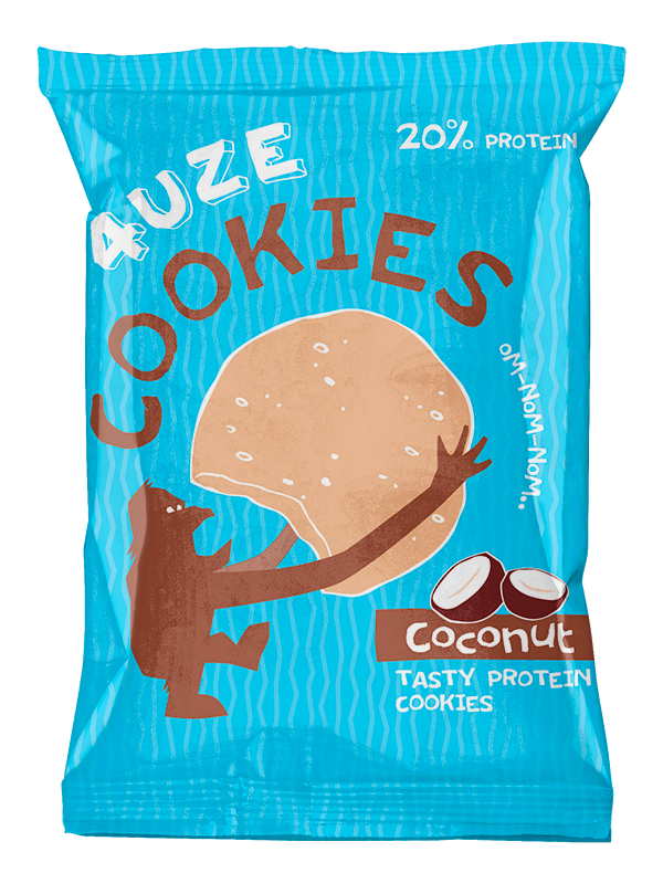 Протеиновое печенье Fuze прекрасно сбалансировано по содержанию жиров, белков и углеводов, содержит много пищевых волокон, а также дробленый арахис, кокосовый и какао порошки (в зависимости от вкуса).
