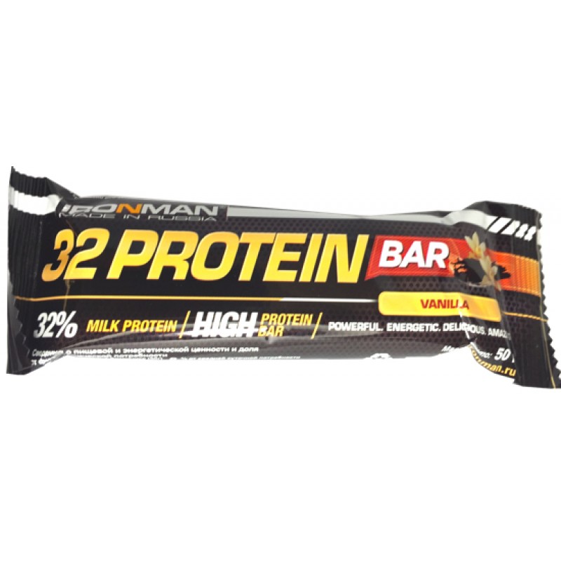 32% Protein Bar протеиновый батончик, 50 г Ironman - содержит 32% высокоценного молочного белка в том числе идеальный по аминокислотному составу сывороточный белок.