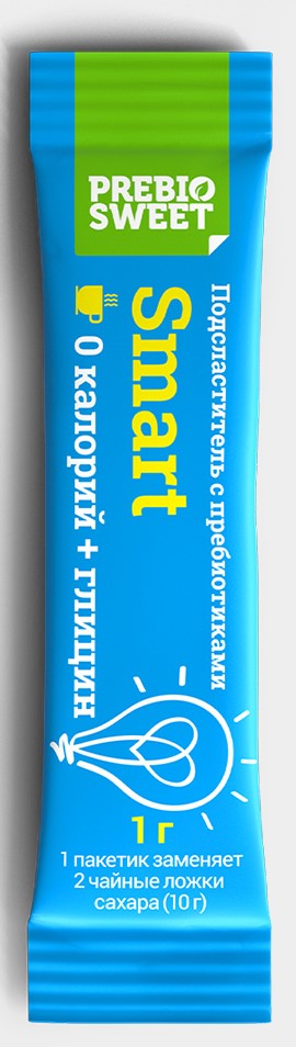 Заменяет 1 кг сахара. Сахарозаменитель Смарт с глицином. В 10 раз слаще сахара. Больше сладости, минимум калорий - максимум пользы здоровью. Антистресс: в составе содержится глицин - аминокислота, которая снижает психоэмоциональное напряжение, помогает бороться со стрессом при голодании и отказе от сахара и вредной еды. Лактулоза известна во всем мире как пребиотик для кишечника №1, который наилучшим образом стимулирует рост и жизнедеятельность полезной микрофлоры кишечника. Сукралоза рекомендована Всемирной организацией здравоохранения как безопасный заменитель сахарозы. Незаменим при безуглеводной диете для похудения и пп, на диабетическом здоровом питании и косметическом голодании, правильном диетическом питании для спортсменов. Альтернатива сахару при сахарном диабете. Существуют различные виды: сахзам в таблетках и саше, стевия порошок, аллюлоза, жидкий. Но признано, что самым безопасным для здоровья является натуральный эритритол или как его еще называют дынный сахар эритрол. Не имеет горечи как стевиозид. Продукт для диабетиков не просто относится к категории низкокалорийные продукты, а содержит 0 калорий. Используется как сахарозаменитель для выпечки, подсластитель для напитков и десертов, добавки в кофе и чай. 1 мерная ложка (1 г) заменяет 10 г (2 чайные ложки) сахара. Сахзам Prebiosweet Smart содержит подсластители эритрит и сукралозу, глицин и пребиотик лактулозу. No sugar
