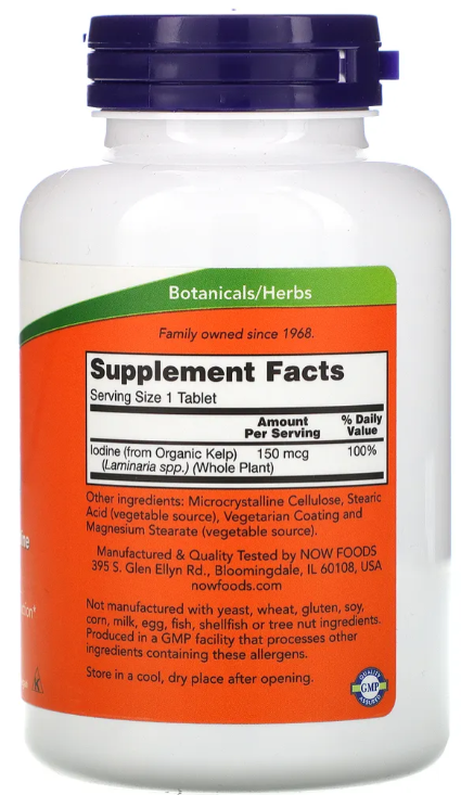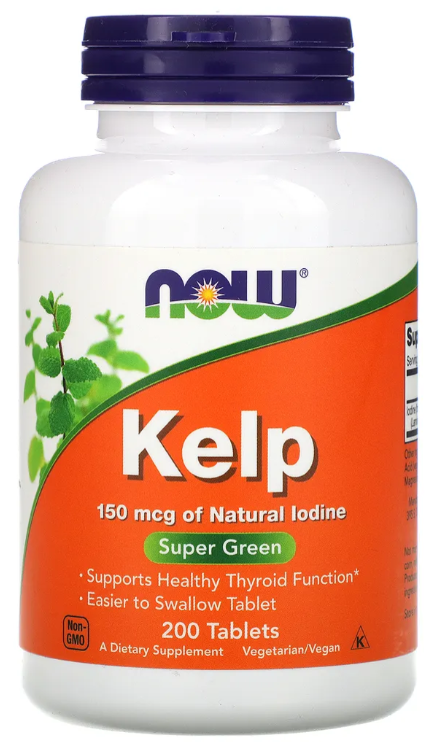 Келп - распространення бурая водоросль , произрастающая в морях и океанах. Он содержит органическую форму йода. Такой йод лучше усваивается и быстрее поступает в щитовидную железу для биосинтеза необходимых гормонов (Т3 и Т4), которые регулируют обмен веществ. При недостатке йода замедляется и нарушается обмен веществ. У детей это приводит к замедлению скорости роста и умственного развития, у взрослых - замедление обмена веществ и снижение работоспособности. Дополнительный прием Келпа помогает избежать недостатка йода в организме и поддержать обмен веществ и работоспособность на необходимом уровне. Содержит необходимую суточную дозировку для взрослого человека .