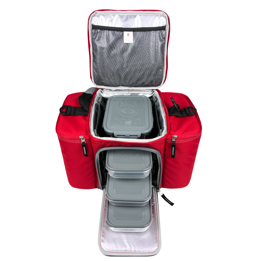 Innovator 300 имеет в наличии 3 контейнера для еды + 1 спортивный контейнер с 2 охлаждающими гелевыми пакетами, а также сумка оснащена эргономичной лямкой.