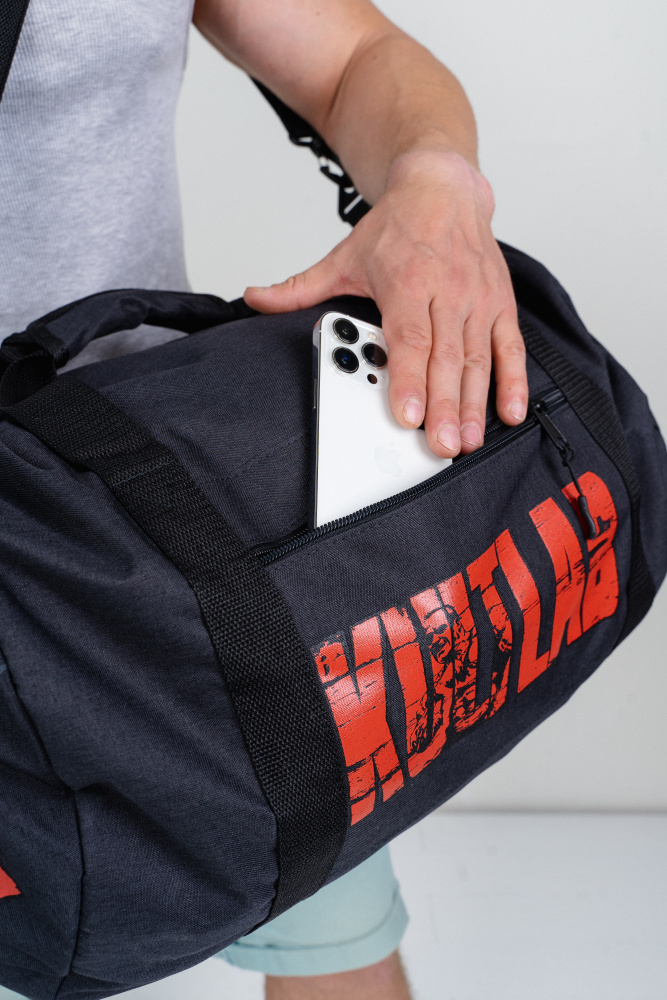 Фирменная спортивная сумкка от KultLab в форме цилиндра.