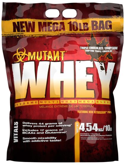 Mutant Whey (Мутант Вэй) - это экономичный, сывороточный протеин от Mutant (Мутант, Канада). Отличный вкус (доступны три вкуса: клубника, ваниль, шоколад), хорошо смешивается и усваивается. Прекрасно подойдет новичку, а если смешать его с Mutant Mass в пропорции 1 к 1-му - Вы получите великолепный высокобелковый гейнер по очень привлекательной цене.