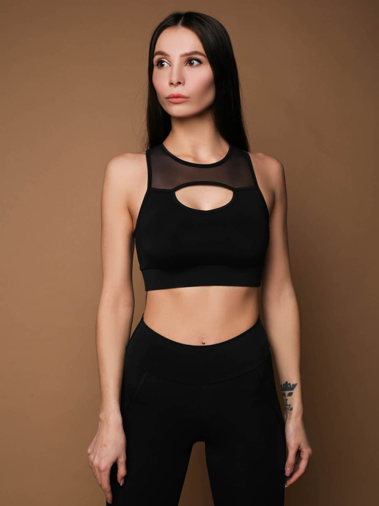 Mansen Топ Black grid decolletage, чёрный