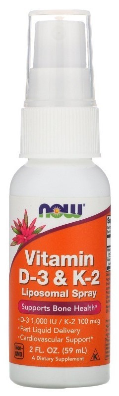 Физическая нагрузка, возраст, избыточный вес, приводят к дефициту нутриентов. Необходимо принимать витамины D3 и K2 в качестве добавки к основному рациону. NOW Vitamin D-3 + K-2 Liposomal Spray укрепляет костный аппарата. Попадает в кровь через слизистую оболочку рта. Улучшает состояние кожи, волос и ногтей. Повышает устойчивость организма к вирусам и инфекциям. Благодаря жидкой форме компоненты быстро усваиваются.