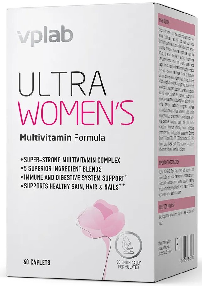 VPLAB Ultra Women's Multivitamin Formula – оптимально подобранный комплекс, содержит более 50 активных ингредиентов. Разработан с учетом особенностей женской физиологии для по-настоящему активного образа жизни на фоне повседневного стресса.