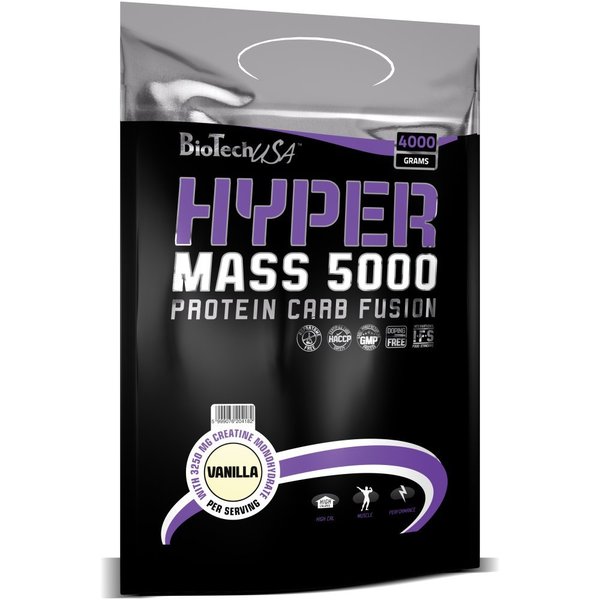 HYPER MASS 5000 - препарат производства BioTech USA, представляющий собой белково-углеводную смесь с превосходными вкусовыми качествами, усовершенствованную посредством включения в состав моногидрата креатина.