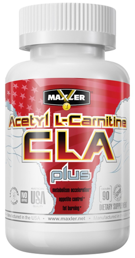 Acetyl L-Carnitine CLA Plus от Maxler дополнительно обогащен CLA, которая регулирует обмен веществ, экстрактами зеленого чая и кофе, стимулирующими ЦНС и локазывающдим мощный антиоксидантный эффект, а также экстрактом гарцинии камбоджийской, который давно доказал свою эффективность в борьбе с лишним весом.
