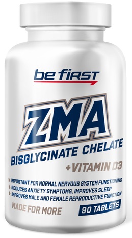 Комплекс ZMA Chelate от Be First – это витаминно-минеральная добавка для поддержки иммунитета, нормализации работы нервной и эндокринной систем, улучшающая метаболизм. Она помогает увеличить эффективность тренировок и ускорить набор сухой мышечной массы, если организм не получает достаточного количества этих элементов из пищи. Этот вариант популярнейшей спортивной добавки содержит цинк и магний в хелатной форме, обеспечивающей более быстрое и полное усвоение данных минеральных элементов.
